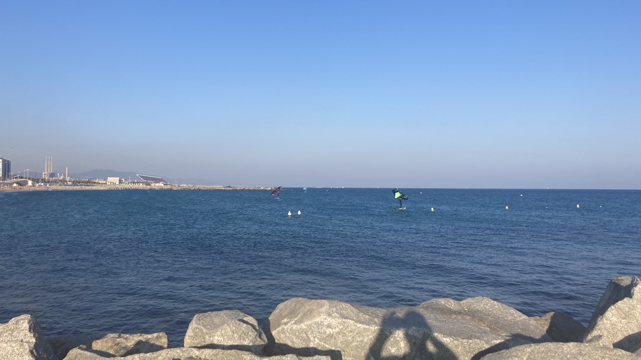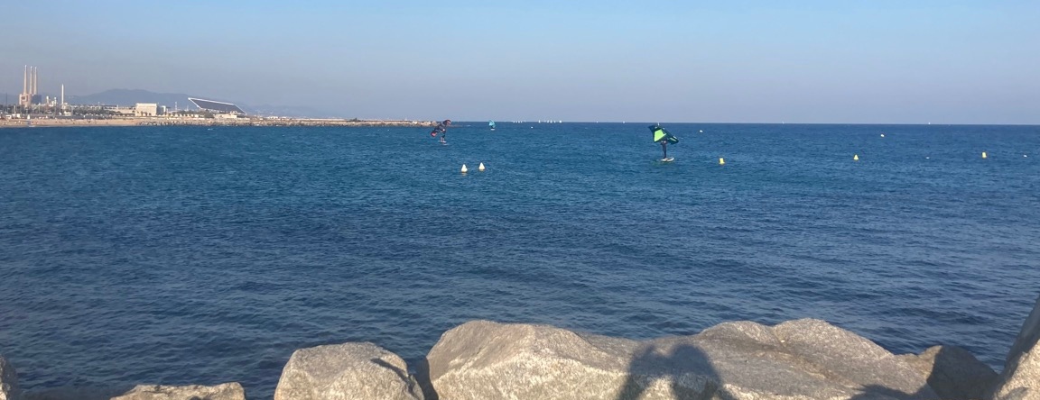 Een hele gave plek om te wing foilen, direct aan het strand van Barcelona.