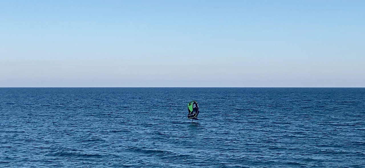 Een typische dag wingfoilen bij la Barceloneta ziet er als volgt uit. Vriendelijke wind en kalme zee.