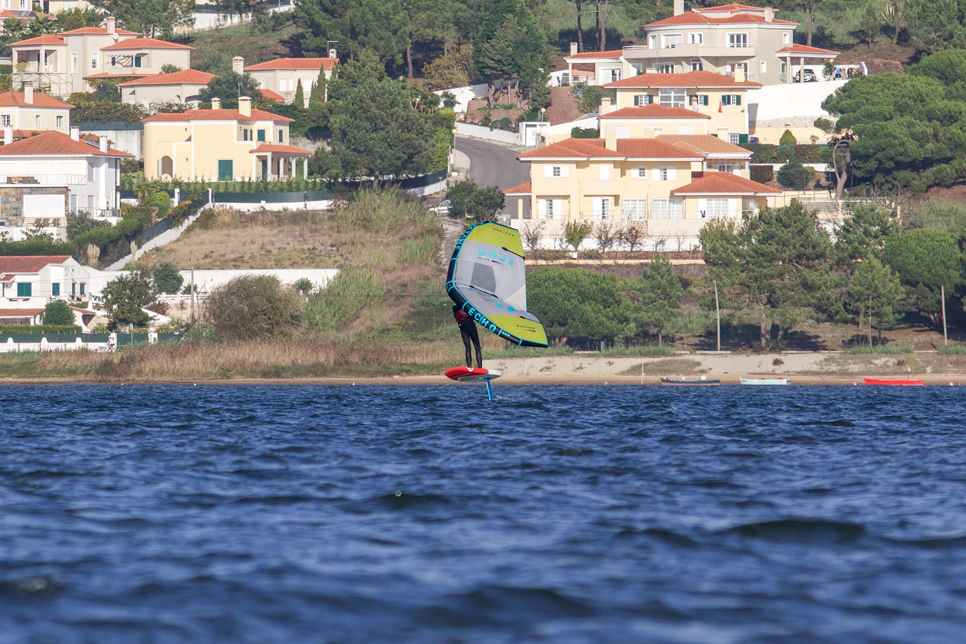 Very good spot for wingfoiling inshore in Portugal. The lagoon is very large so you can have long sessions, however, the water is mostly flat protected. That’s why it’s also a good spot for learning to wingfoil. The surroundings are stunning. If you fall, take a moment to look around you and absorb the beauty of the Portuguese landscape that surrounds you.