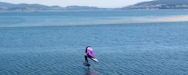- Wing with longboard, you start sailing on the water with a longboard.